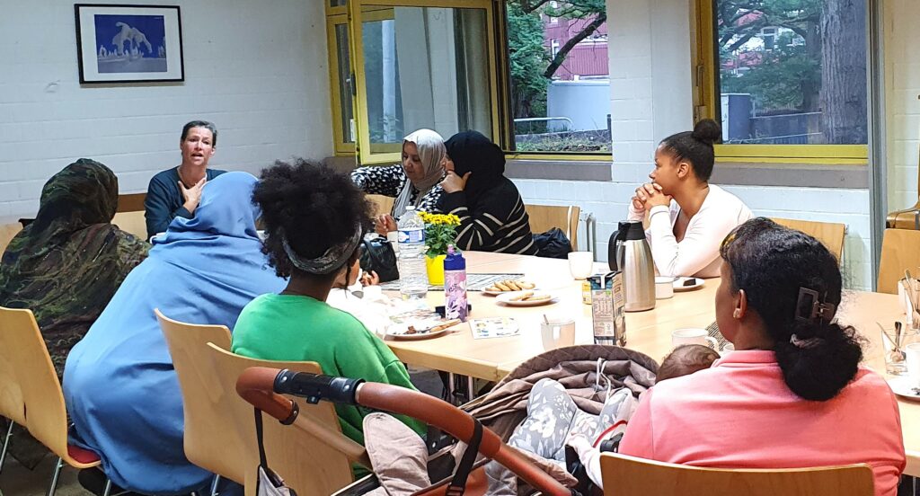 Spontane Info-Runde mit den Mitarbeiterinnen von dem Programm e:du (ELTERN UND DU) vom Kinderschutzbund Wiesbaden und mit Conny Schneider von der Arbeitsgemeinschaft Schelmengraben (ags) - 02.07.24
